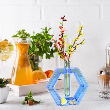 Molde de resina M2129 para Estación de reproducción de plantas, florero en forma hexagonal, moldes de silicona epoxi, tubo de prueba, plantador de resina