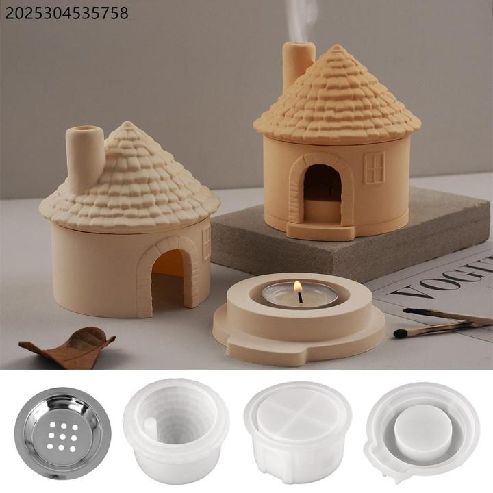 M52392 Casa de campo Chimenea Candelabro Tarro de aromaterapia Estufa de aromaterapia Molde de silicona de resina de cemento de yeso