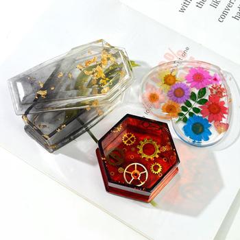 M13201 caja de almacenamiento maceta suculenta tapa Hexagonal ataúd hecho a mano resina molde de silicona